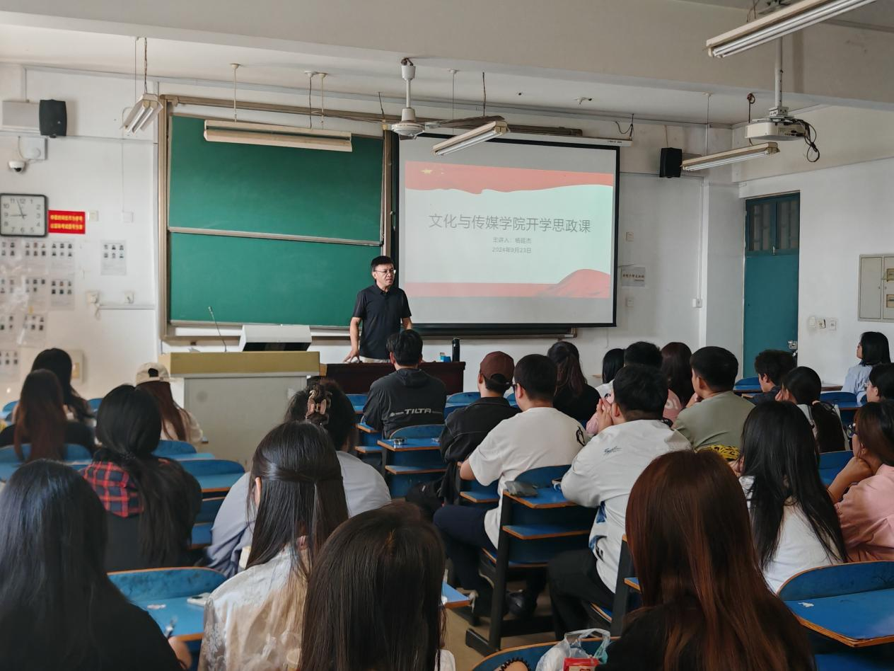 9 月 23 日上午9点,公司党总支书记杨延杰为2024级播音与主持艺术、广播电视编导同学讲授开学思政课。
