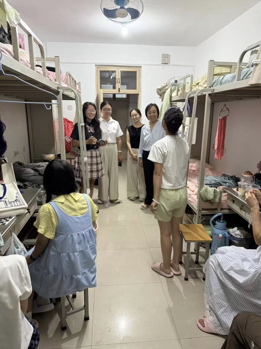 走访中,老师们与新生亲切交流,细致询问同学们来自哪里、是否适应校园环境、生活上是否有困难,并耐心解答同学们提出的问题。同时重点提醒新生规范用电,强化防火防盗意识,保持宿舍整洁,共同营造安全卫生的居住环境。