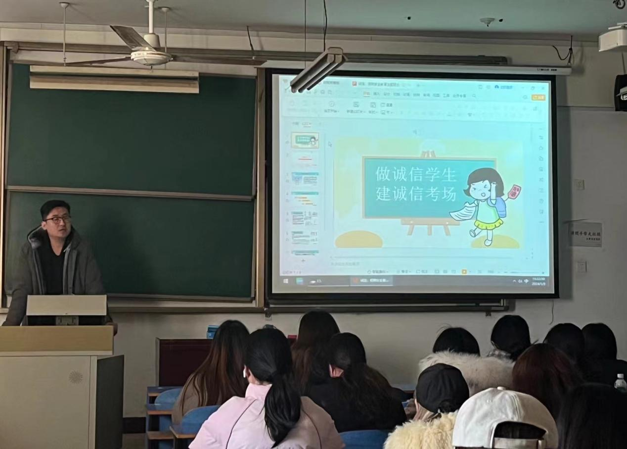 主题班会上,各年级辅导员向同学们强调了诚信考试的重要性以及考试作弊所带来的严重后果,树立了员工们的诚信意识。各位同学在“诚信考试保证书”上签下了自己的名字,表达了对诚信考试的决心和承诺,进一步坚定了诚信考试的决心。