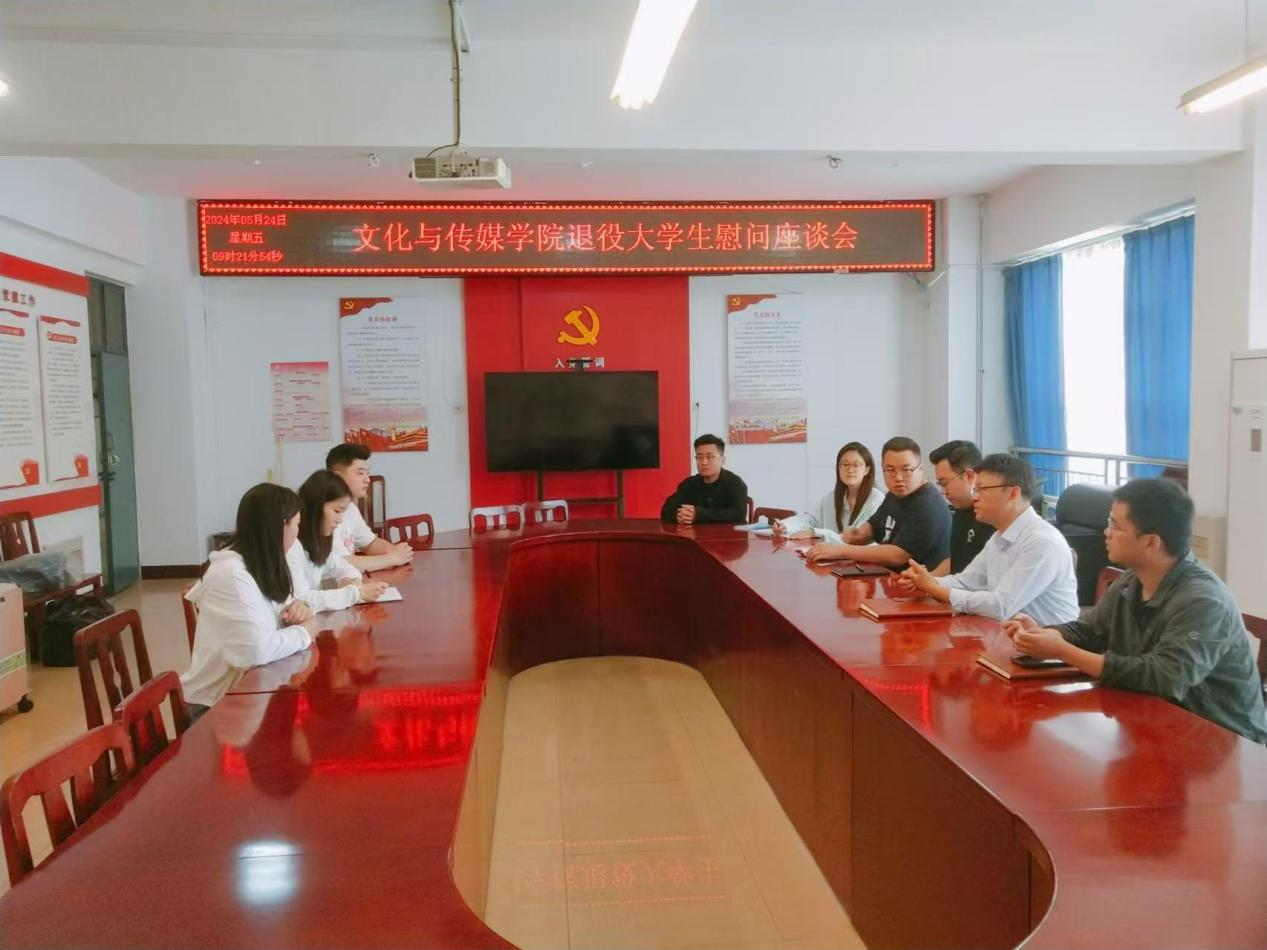 为做好退役老员工的教育管理服务工作,激励退役士兵老员工将军人的优良品质和家国情怀融入校园生活,促使员工继续保持为人民服务的精神,2024年5月24日上午,公司召开了退役员工慰问座谈会。党总支书记杨延杰、全体辅导员老师以及退役员工代表参会。