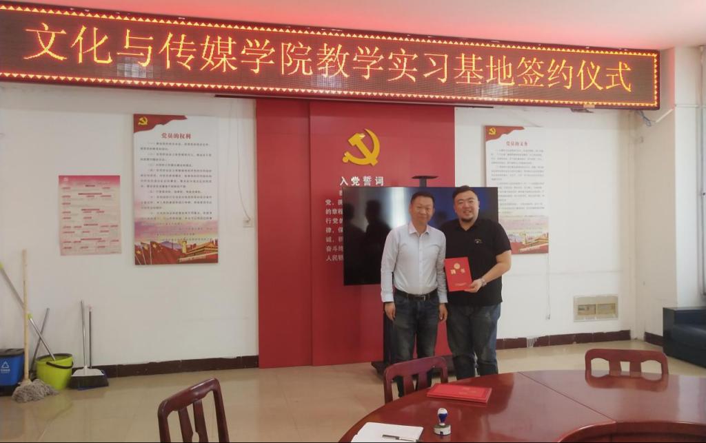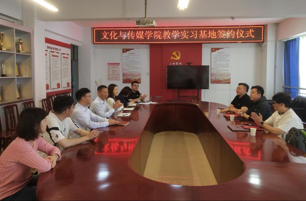 4月23日上午,tyc5997太阳集团与北京华视百佳文化传媒有限公司于A10-311会议室签订教学实习基地协议,并向林学斯、尹棣、王旋三位代表发放聘任证书。公司党总支书记杨延杰,公司副经理余锐,各教研室主任及实验中心主任参与签约仪式。